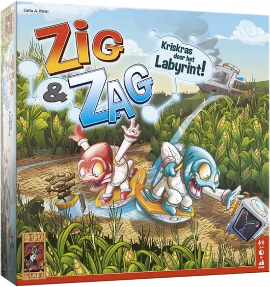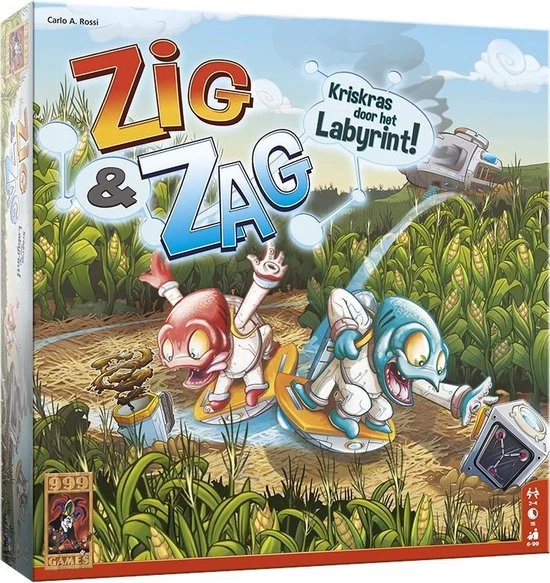 Kriskras door het labyrint! Zig en Zag storten met hun ruimteschip in een maïsveld neer. Daarbij verliezen ze 12 bijzondere voorwerpen. Deze moeten ze verzamelen, voordat ze naar huis kunnen vliegen. Willen jullie Zig en Zag helpen zoeken? In dit coöperatieve en communicatieve spel beweeg je magnetische speelstukken over beide kanten van het speelbord door het labyrint. Werk goed samen, want meestal weet maar één van jullie waar de weg naartoe leidt. Maar pas op, de tijd loopt… De handleiding bevat ook spelregels voor een competitieve variant.