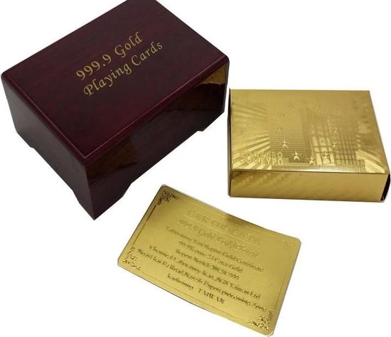 – Spel gouden speelkaarten met 54 kaarten (ruiten, harten, schoppen klaveren & 2 jokers)