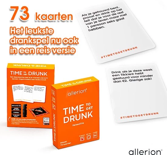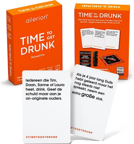 Heb jij zin gekregen in een gezellige avond? Bestel ?Time to get Drunk ? Travel Edition? dan snel, nodig je vrienden uit, en leg de drank maar vast koud! Dit spel kan met zo veel spelers als je wilt gespeeld worden en door de grote diversiteit aan kaartjes wordt het nooit saai. Voor vele gezellige en beschonken avonden!