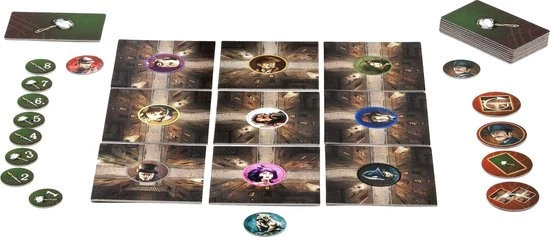 | Verpakkingsinhoud | Contents:<br, />9, double-sided, street, tiles, with, Suspects, on, one, side<br, />9, Alibi, cards<br, />3, Detective, tokens<br, />4, double-sided, Action, tokens<br, />8, double-sided, Time, tokens<br, />Spelregels, in, NL/, DE/, EN/, FR/, ES/, GR |