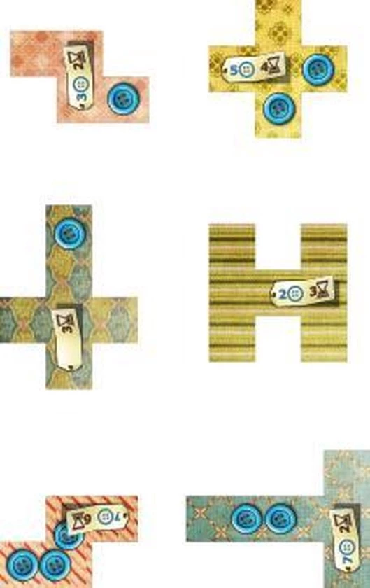 Probeer zoveel mogelijk lapjes op je dekentableau te leggen. Zorg er niet alleen voor dat het lapje past, maar houd ook rekening met de tijd die nodig is voor het inpassen en de ontvangsten die het in knopen opbrengt. Uiteindelijk krijg je namelijk zoveel punten als het aantal knopen dat je hebt min tweemaal de onbebouwde velden op je speelbord. Bouw je als eerste een deken van 7 x 7, dan krijgt je bonuspunten!