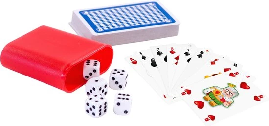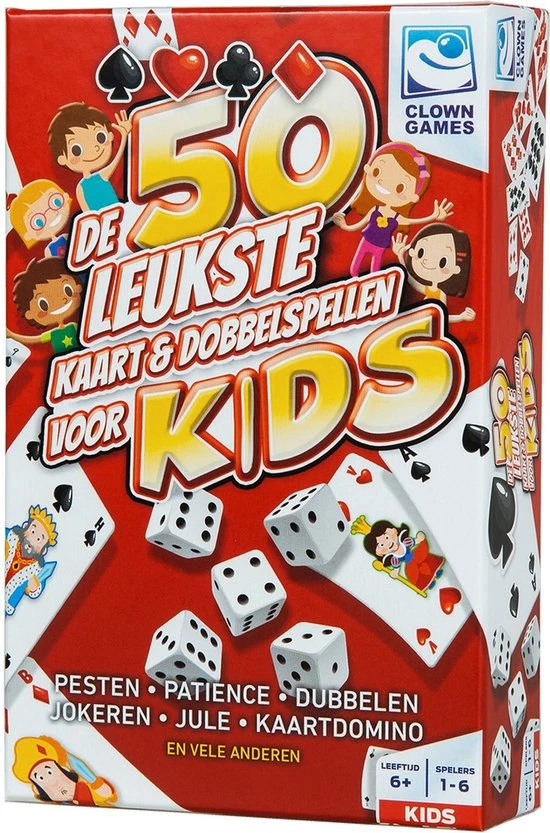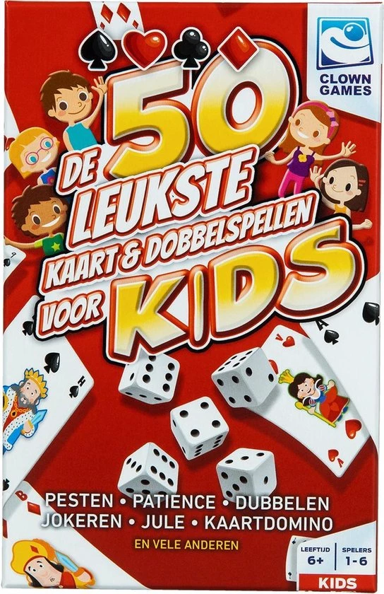 Heb j? alt?d al willen weten hoe je moet pesten? Of wat de spelregels van jokeren z?n? Weet j? nog wat je precies moet gooien voor een grote straat? En kan je uitleggen hoe patience ook alweer gaat? Met deze complete set van Clown Games kun je de allerleukste kaart- en dobbelspellen leren! Leuk voor een gezellige middag met de hele familie, voor onderweg of op vakantie! Inhoud: 2 pakken speelkaarten, instructieboekje met uitgebreide uitleg voor 50 kaart- en dobbelspellen, dobbelbeker, 50 plastic fiches, scoreblock en 5 dobbelstenen. Wordt geleverd in full-colour doosje. Geschikt voor 1 tot 6 spelers vanaf 6 jaar.