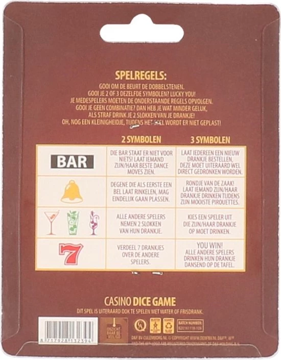 | Verpakkingsinhoud | 2, dobbelstenen. |