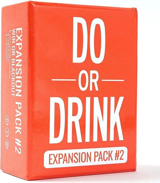 Ben je toe aan enkele nieuwe uitdagingen tijdens het spelen van de originele basisset van Do or Drink? Met dit tweede uitbreidingspakket haal je 100 nieuwe kaarten in huis om het spel weer helemaal uitdagend te maken.