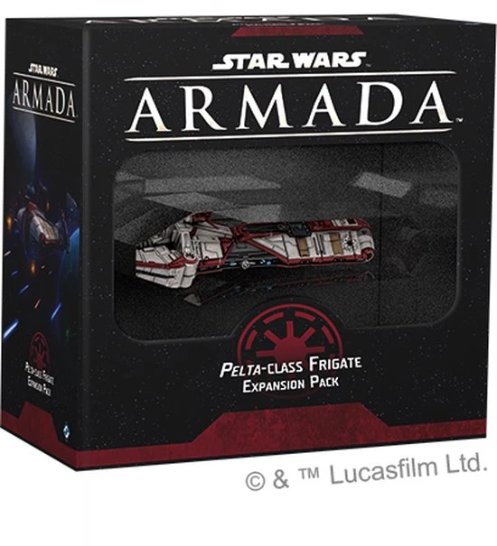This pack includes everything you need to add 1 Pelta-class Frigate to your games Star Wars™: Armada including 1 painted plastic ship with base and fin, 2 ship cards, 7 upgrade cards and 9 tokens.