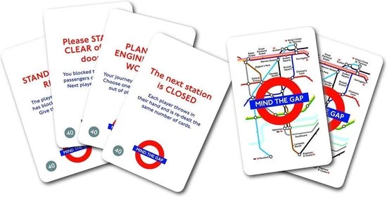 Pest en klier kaartspel in underground thema! In een mooie tinnen cadeauverpakking. Mind the Gap is een Uno-achtig kaartspel.