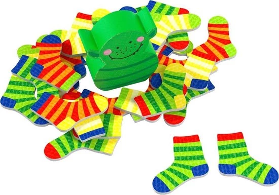 Ontdek dit mini gezelschapsspel Sokken zoeken van Haba voor kinderen vanaf 4 jaar. Het grote sokkenmonster heeft zich in de kleerkast verstopt en er een vreselijke warboel van gemaakt. De spelers graven met z’n allen tegelijk in de berg sokken en moeten bij het zoeken naar passende paren bewijzen dat ze een arendsoog hebben. Wie als eerste vier paren gevonden heeft, is de winnaar. Inhoud: 1 sokkenmonster, 36 sokken (18 paar) en een spelhandleiding. Dit reactie spel kan gespeelt worden met max. 4 personen.
