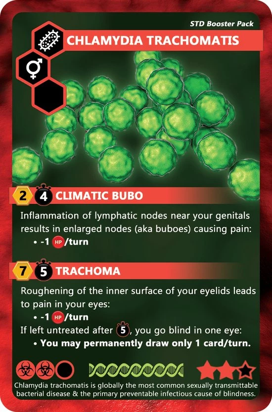 Breid je ImmunoWars spel uit met 32 SOA Editie kaarten waaronder gonorroe, syfilis, chlamydia, en nog veel meer!