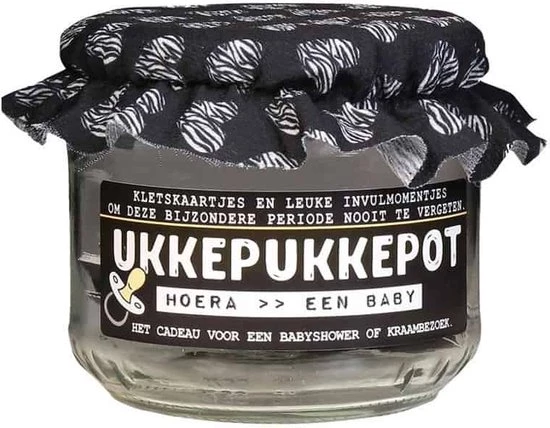 Omschrijving Kletspotje Ukkepukkepot Hoera, een baby! Deze kleine kletspot is h?t cadeau voor een babyshower of kraambezoek. Met kletskaartjes en leuke invulmomentjes om deze bijzondere periode nooit te vergeten!