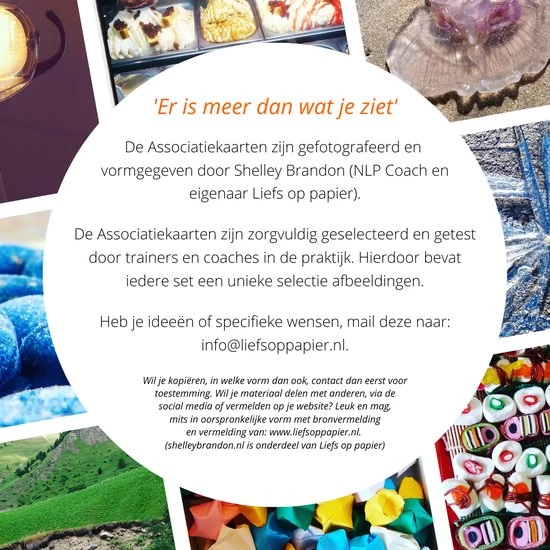 Werken met de Associatie kaarten set zorgt dat er vanzelf een associatie (gevoelens, herinneringen, toekomstdroom, enzovoort) naar boven komt die op dat moment passend is.