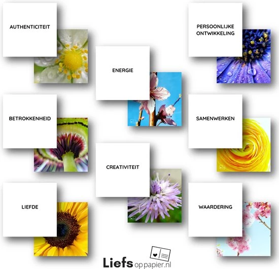 Ps. Er is ook een zwart/wit versie van de Kernwaarden set, zonder bloemen.