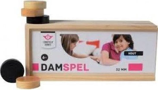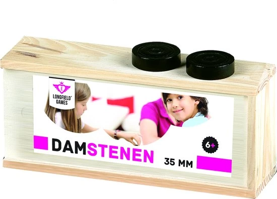 | Verpakkingsinhoud | Longfield, Games, damstenen, 35, mm, in, houten, kist, met, schuifdeksel. |