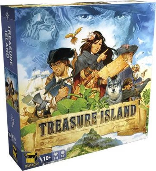 De bemanning van piraat Long John Silver heeft muiterij gepleegd en heeft hem in het nauw gedreven en vastgebonden! Ronde na ronde ondervragen ze hem over de locatie van zijn schat en verkennen het eiland volgens zijn aanwijzingen – of misschien zijn misleidingen? Wie weet… die oude zeebonk is van plan om te ontsnappen, waarna hij zeker zal proberen zijn schat terug te krijgen. Treasure Island is een spel van bluffen en avontuur waarin een speler Long John speelt en probeert de anderen te misleiden in hun zoektocht naar zijn schat. De jacht bereikt een climax met Long John’s ontsnapping, wanneer hij een ultieme poging zal wagen om de buit te verkrijgen!