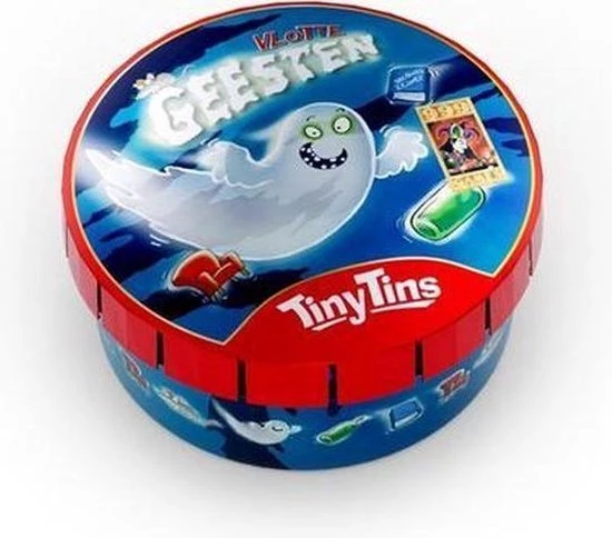 Hoe handig zou het zijn als je je favoriete spelletje in je broek- of jaszak zou kunnen meenemen? Daarom brengen we Vlotte Geesten nu ook in miniformaat uit. De tin is zo groot als een pepermuntdoosje, waardoor je het spel overal kunt spelen. En natuurlijk ook heel leuk om ze te verzamelen!