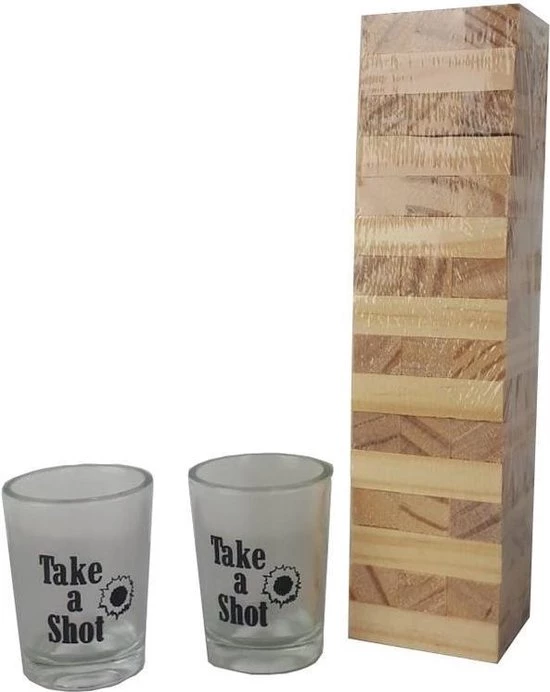 Tipsy Tower is een leuk waarbij de speler die aan de beurt is een houten blokje uit de toren haalt en deze er vervolgens bovenop moet leggen. Zo ontstaat een steeds hogere en instabielere toren. De speler die de toren om laat vallen heeft verloren en neemt een shotje.