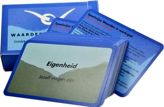 Het spel bestaat uit 2 kaarten met uitleg over de speelwijze, 74 waarden kaartjes met een korte betekenis en 3 kaartjes voor het indelen van de categorie?n: Zeer belangrijk, belangrijk, minder belangrijk.
