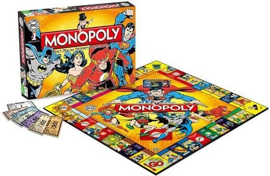 Begeef je in de wereld van de DC Originals met deze Monopoly DC Comics Retro editie! Waan je een weg door de verschillende werelden en verover LexCorp of Wayne Industries terwijl je onderweg allerlei helden en schurken verzamelt. Werk samen met je sidekick en gebruik je vaardigeden om tegen Darkseid, Lex Luthor of The Joker te strijden. Houd je ogen open en zorg dat je eigendom niet door anderen gestolen kan worden!