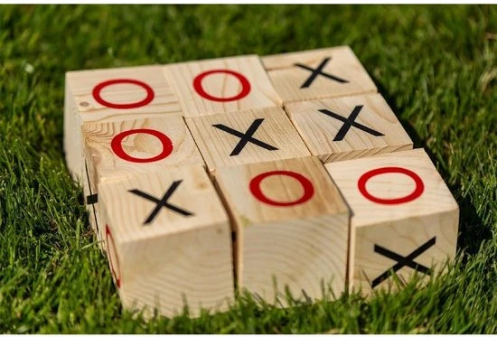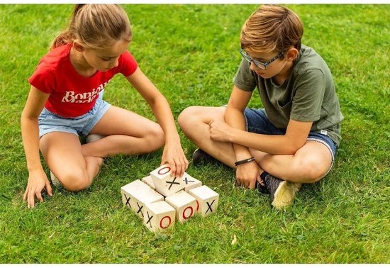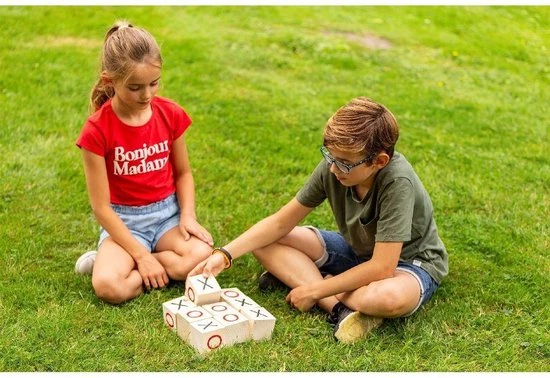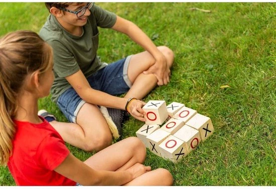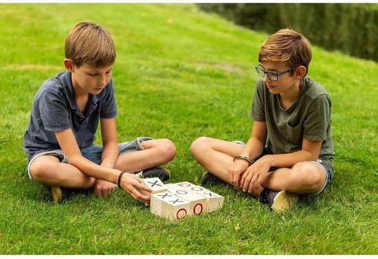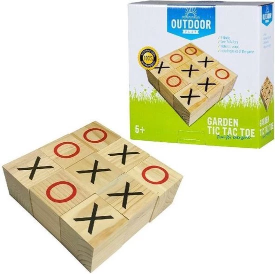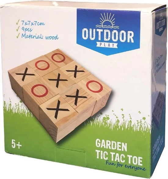 Outdoor Play boter, kaas en eieren, vervaardigd van hout. Wie heeft als eerste 3 kruisjes of 3 rondjes op een rij? Wordt geleverd in full-colour doos. Geschikt voor kinderen vanaf 5 jaar.