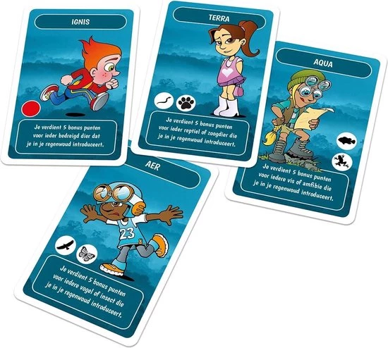 Het spel bevat tevens 12 evenementkaarten die voor verrassende ontwikkelingen kunnen zorgen. Het spel eindigt wanneer een speler zijn of haar 10e dier in het regenwoud introduceert. De winnaar is de speler die op dat moment de meeste punten heeft verzameld. Het spel duurt 15-20 minuten en is zeer eenvoudig om te leren.