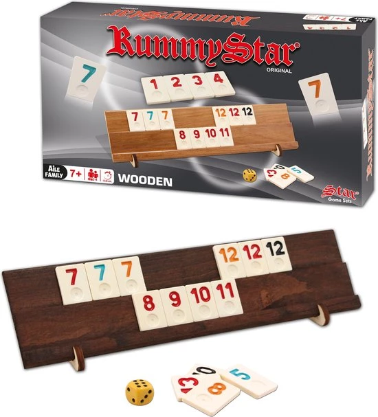 Rummy is een van de populairste familiespellen ter wereld. De unieke combinatie van tactisch denken, geluk hebben en een gespannen competitie heeft dit klassieke familiespel tot ??n van de meest succesvolle games gemaakt van de afgelopen 70 jaar! Maak mooie cijferreeksen met de gekleurde cijfers op je plankje.
