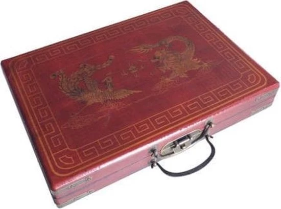 Traditioneel Mah-Jong spel in luxe houten doos, beschilderd.