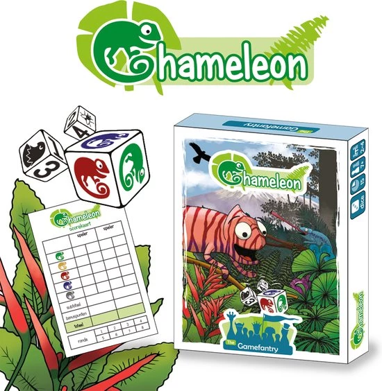 Ben jij op zoek naar een leuk dobbelstenen spel, waarin geluk en tactiek een rol spelen? Zoek je een leuk familiespel voor kinderen? Dan is Chamelon echt een aanrader. Bij dit dobbelspel voor kinderen gaan de dappere kameleons – met een fikse trek – de strijd met elkaar aan om te kijken wie de meeste insecten vangt. Echter, er schuilt ook gevaar…wil jij dit leuke familiespel voor kinderen ook in huis hebben? Het is voor kinderen vanaf 7 jaar (advies) en speelt het met 2 tot 4 personen. Hieronder meer details voor dit – in onze ogen – familiespel van het jaar.
