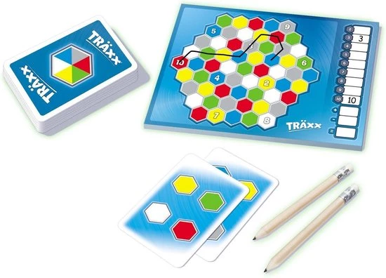 Van de makers van Qwixx! Een nieuwe versie met schrijfblokken. Träxx is zowel simpel als geniaal. In twee minuten uitgelegd. Geen wachttijden. Spannend tot het einde. En elk spel verloopt compleet anders. Iedere speler zoekt ronde na ronde de ideale weg op zijn bord. Je moet zoveel mogelijk puntenvelden bereiken. Maar let op: welke weg nemen je medespelers? Welke puntenvelden zijn nog vrij? Waar kan men de meeste punten verzamelen? Zoek de ideale weg en win! Ook alleen speelbaar!